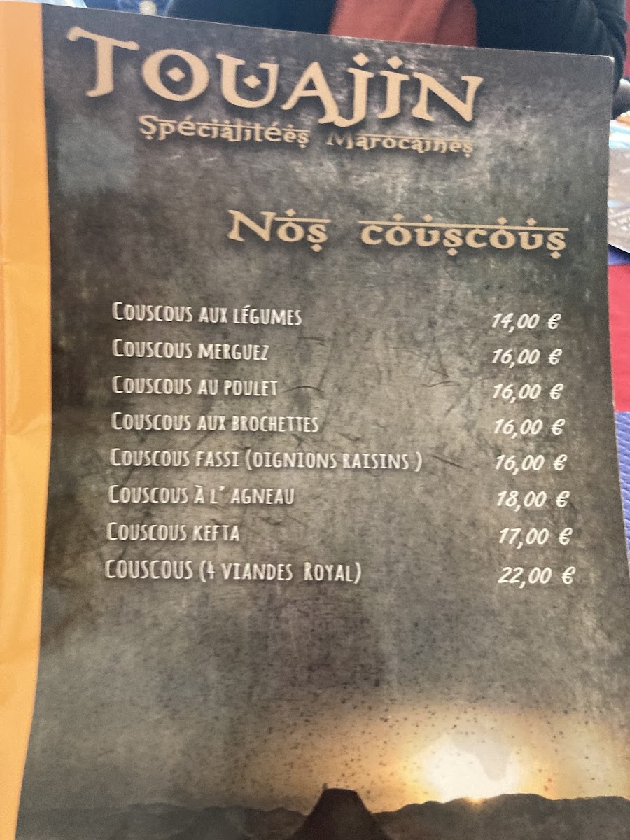 At Touajin, the menu offers a thoughtful selection of traditional Moroccan dishes presented in a relaxed and welcoming environment. The focus is on comforting, well-balanced meals that invite you to slow down and savor each bite, whether you're enjoying a leisurely lunch or a quiet dinner.